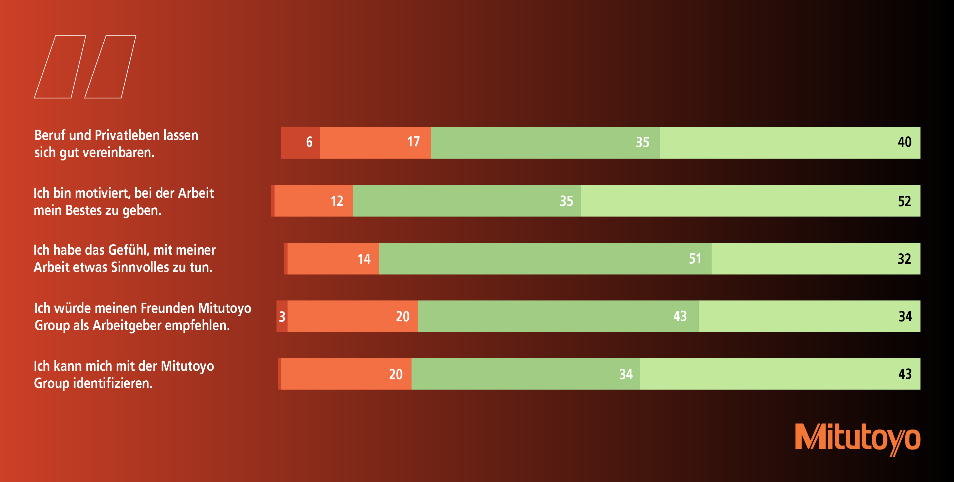 Was den Arbeitsalltag bei Mitutoyo betrifft, fördert das Unternehmen ein durch Unterstützung und Zusam-menarbeit geprägtes Umfeld, in dem Vielfalt, Kreativität und herausragende Leistung geschätzt werden. Bei Mitutoyo werden Mitarbeiter ermutigt, über den Tellerrand zu schauen, um innovative Lösungen für komplexe Herausforderungen zu finden, und dabei stets einen starken Fokus auf Kundenzufriedenheit und Produkt-qualität zu legen.